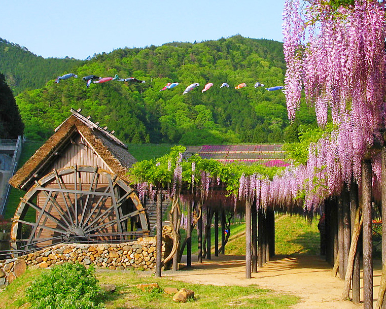 この時期、竹田城跡とあわせて見たい、見渡す限りの藤と、巨樹の神秘に触れる旅。 今回はホテルENから少し北へ、自然豊かな公園をふたつご紹介しましょう。 ● 白井大町藤公園 当ホテルから約12Kmほど上がったところ、 総面積約7000㎡の敷地に、総延長500mの見事な藤棚がある山陰最大の藤公園。 紫・白・ピンクの鈴なりの藤が美しく風に揺れる姿、 その背景には山々の新緑、雄大な鯉のぼりとの共演は、まさに…