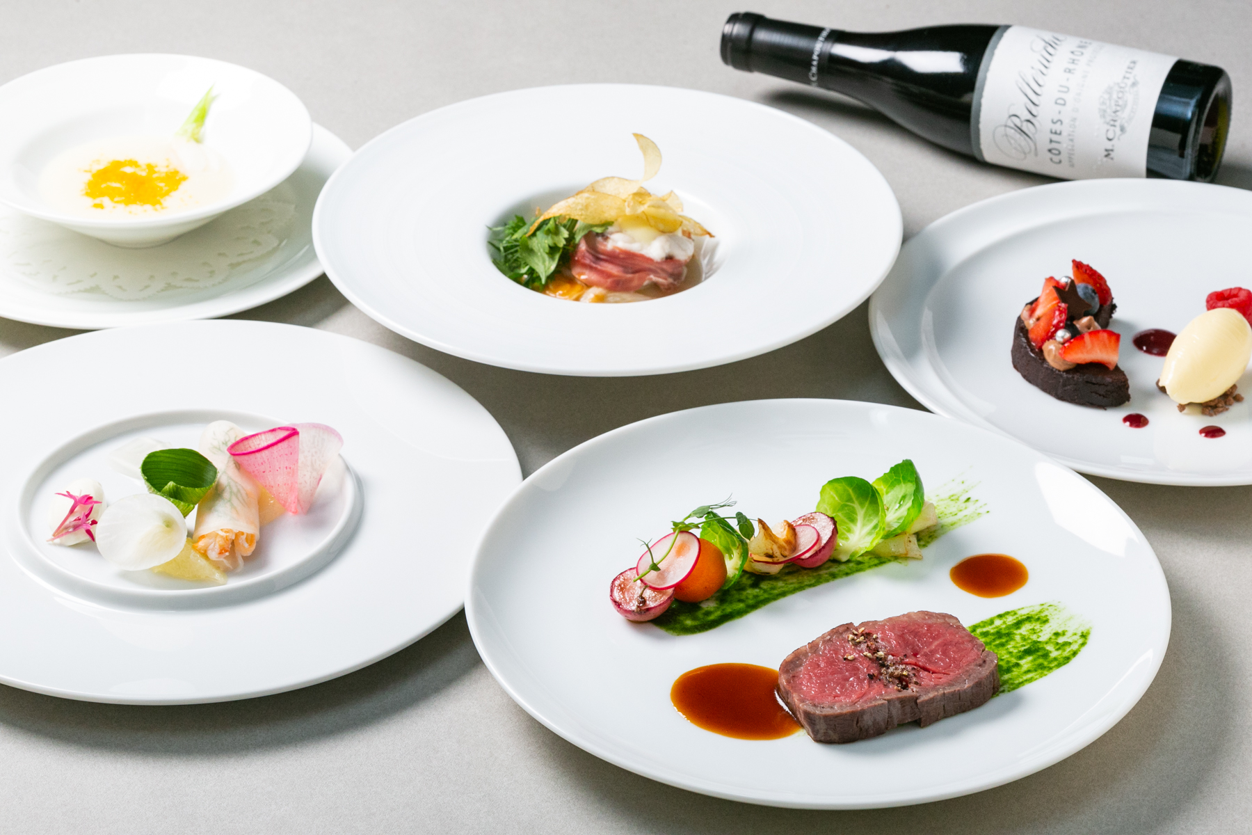 仕上げに添えた「海の旨味」が全体の輪郭を際立たせる、独創的なマリアージュをお楽しみください。