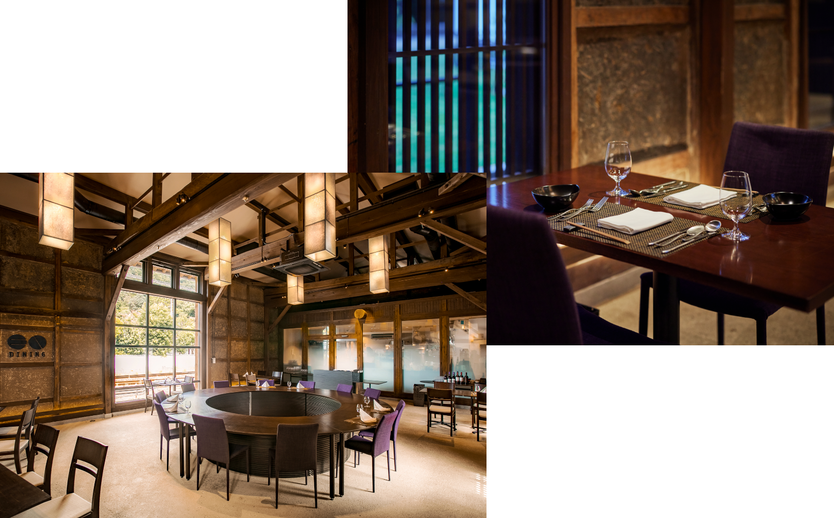 竹田城 城下町 ホテルENのダイニングは、かつて発酵蔵として使われていた歴史ある空間です。