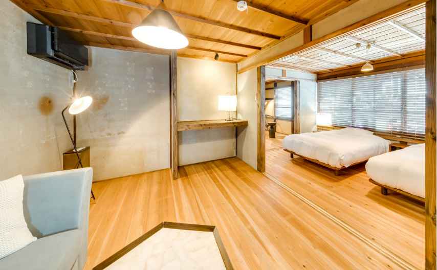 面積:28㎡/ダブルベッド×2・エキストラベッド×1・布団orベッド- 1階フラット