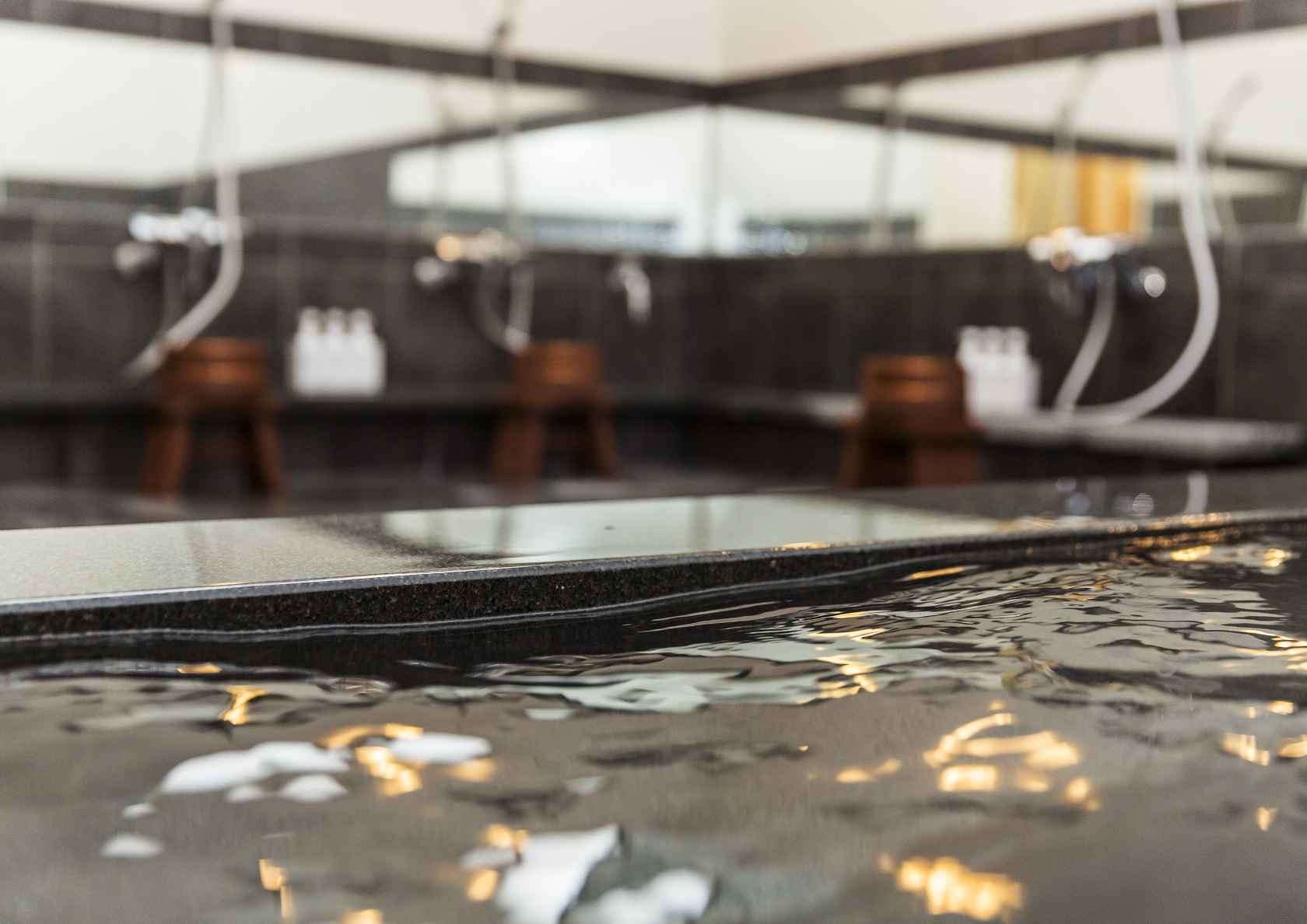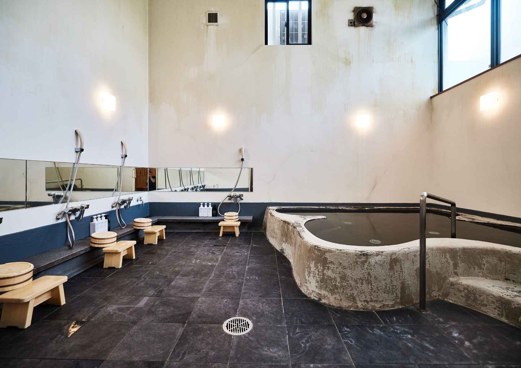 かつて蔵としての役割を担っていた場所は、今では檜の香りに包まれた癒しの空間へと生まれ変わりました。竹田城跡と雲海をモチーフにした湯船にたっぷりと浸かれば、絶景の余韻と共に、薪で焚かれたお湯が体の芯から温めてくれます。