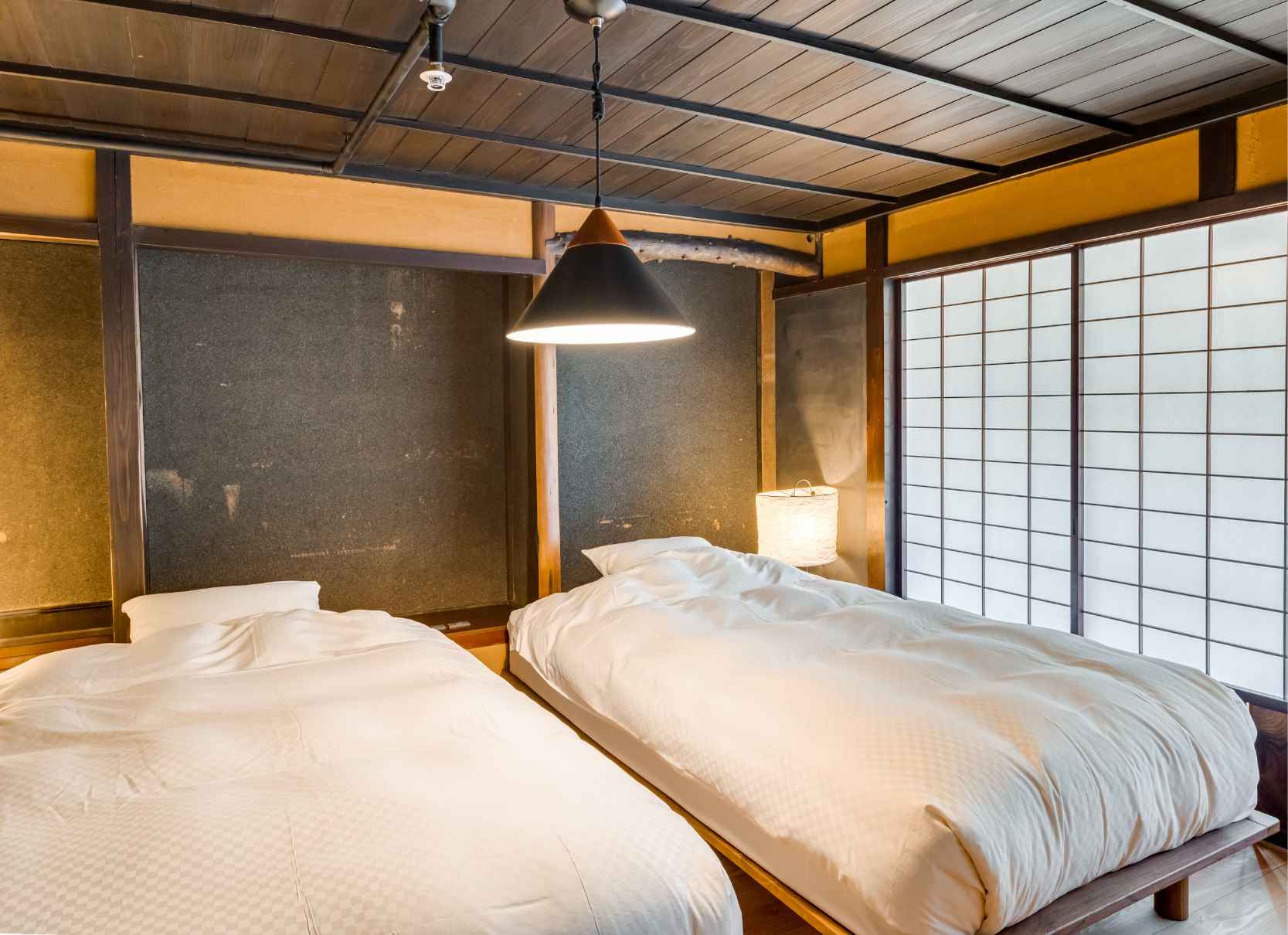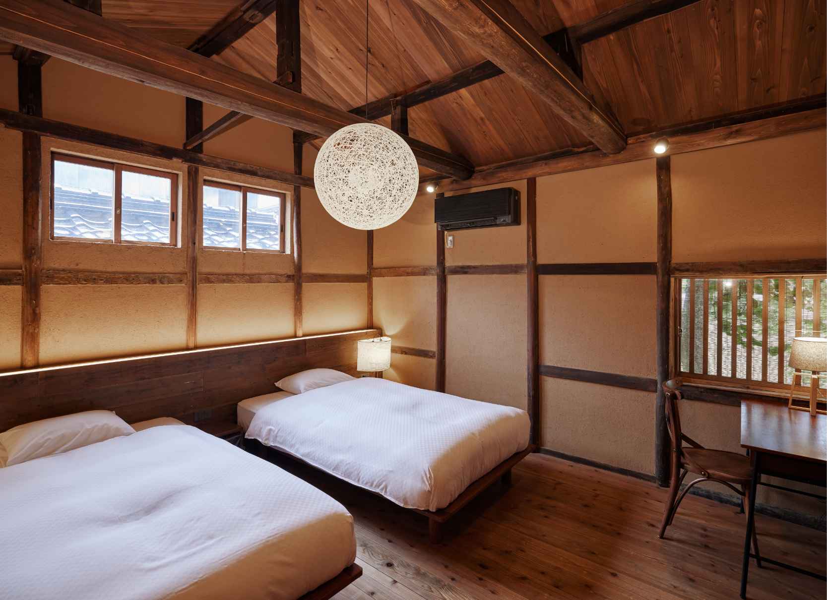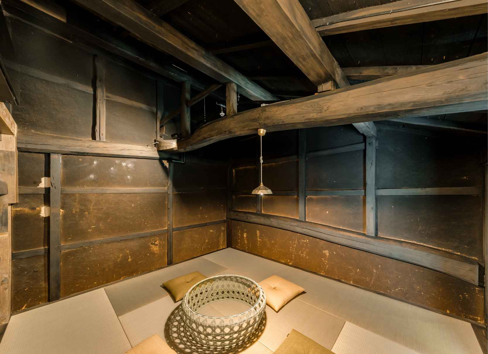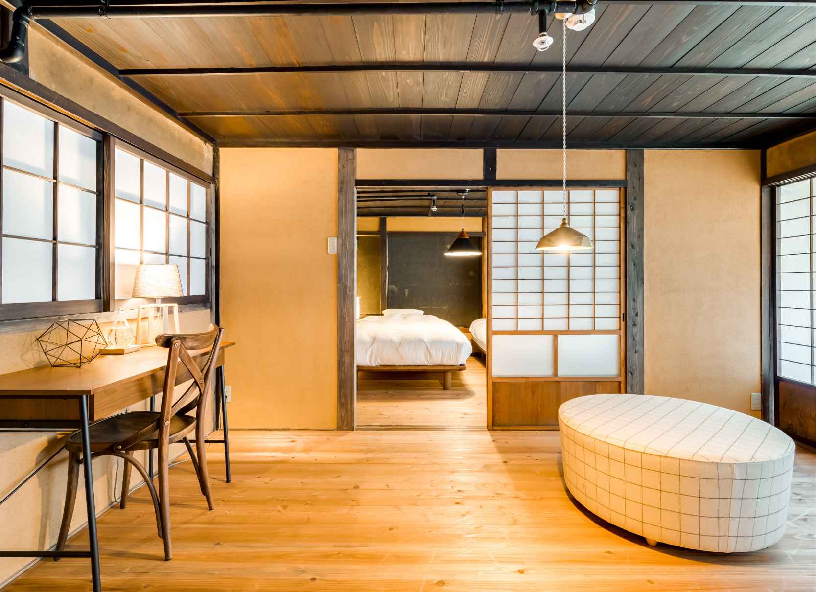 土間や梁、土壁の風合いや、メゾネットならではの隠れ家のような雰囲気など、「歴史建築に泊まる」体験を存分に満喫できるお部屋。もとの特徴を生かしたユニークな造りながら、モダンに改修され、快適にお過ごしいただけます。
