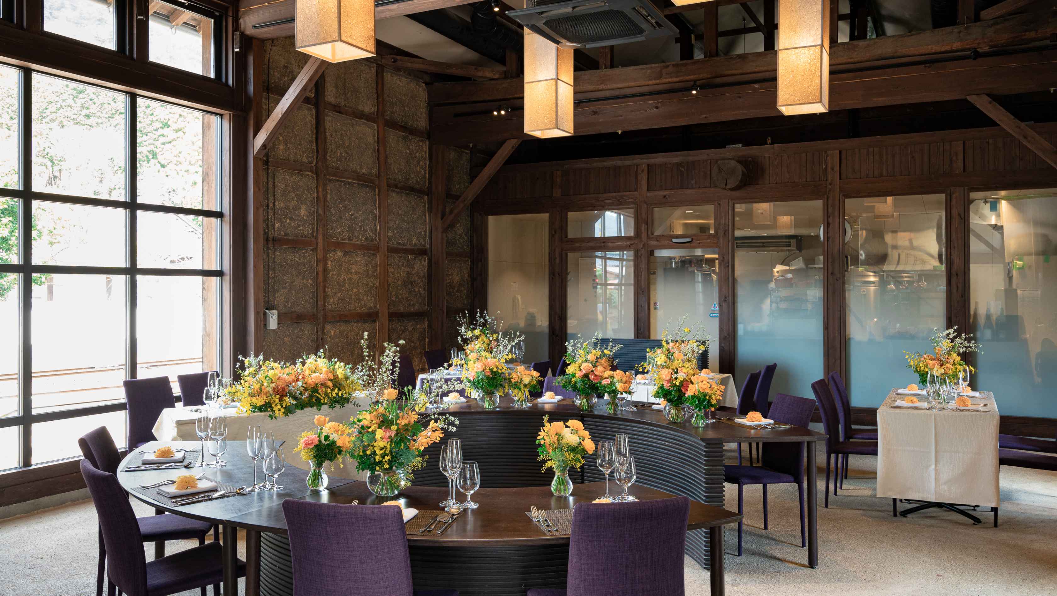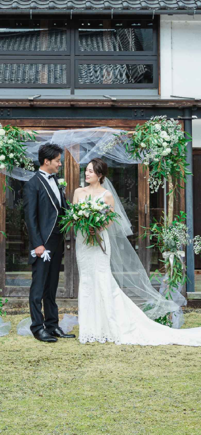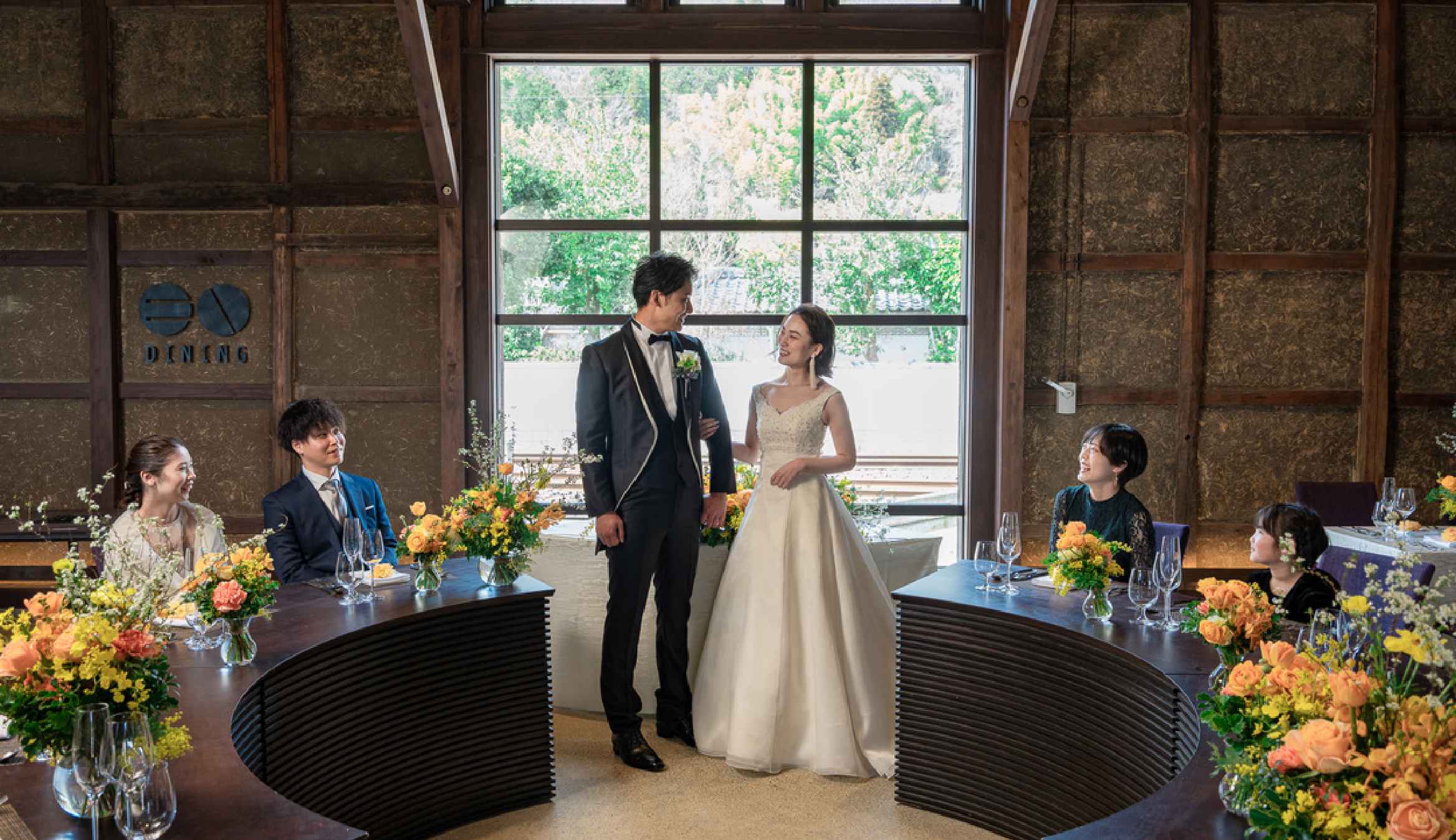 一日一組限定の貸切ウエディング。歴史ある蔵を改修したモダンな空間で、ゲストと心ゆくまで過ごすアットホームなパーティ。選べる挙式スタイルで、理想の一日を。