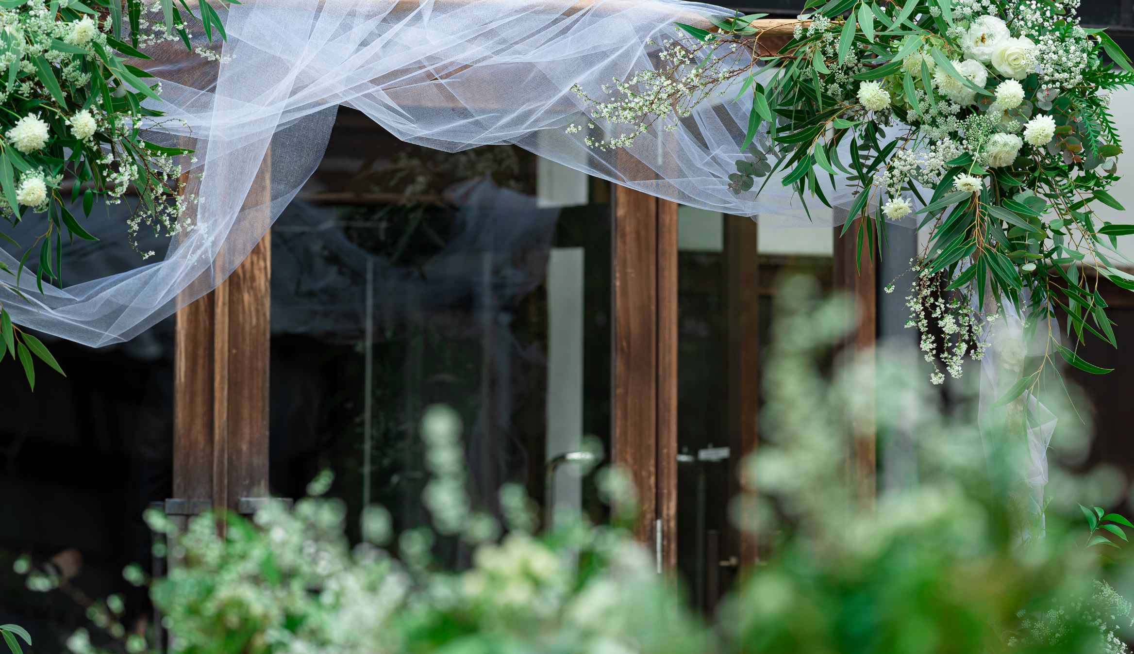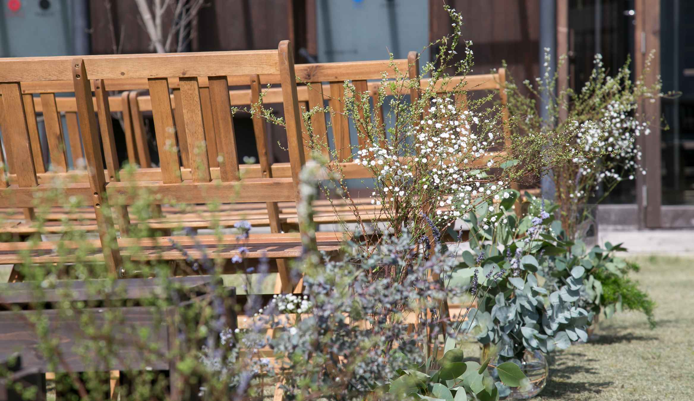 ホテルENの中心である中庭は、山頂の竹田城跡を望むことができる絶好の空間。竹田の自然と空気、人のあたたかみが最高の演出アイテムになる、象徴的なスペースで、全員の記憶に残るガーデン挙式を。ふたりらしいセレモニースペースのコーディネートや、リボンワンズやフラワーシャワーなど多彩なアフターセレモニーもお楽しみいただけます。