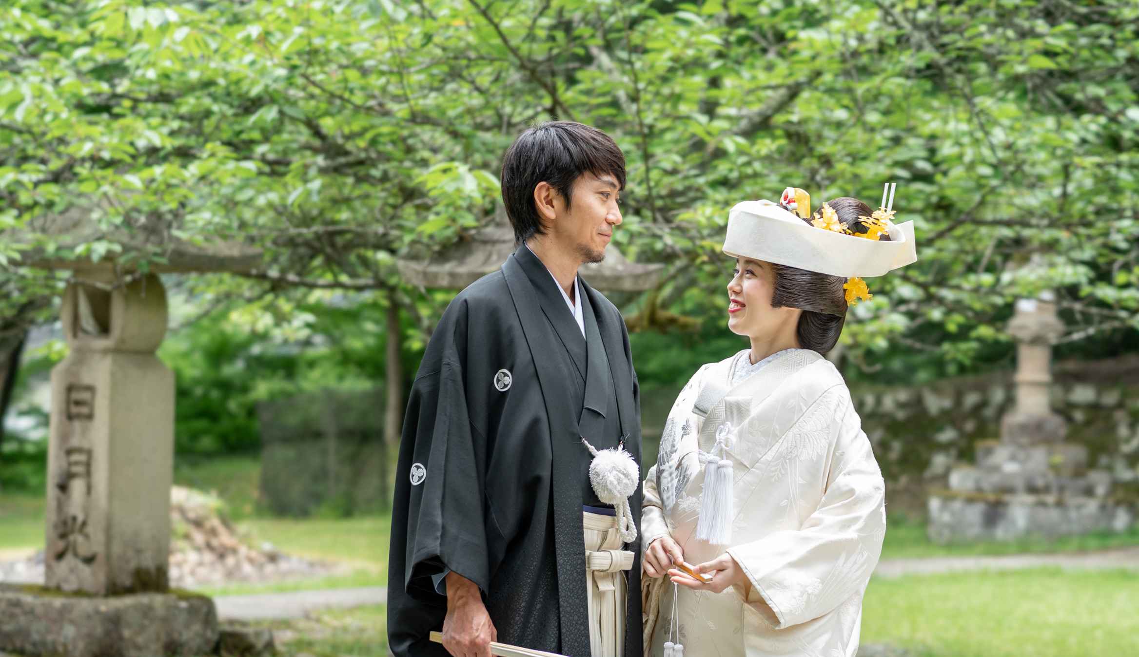 「出石神社」や「養父神社」など、 ふたりの希望にあわせて幅広くご紹介。 日本古来の伝統にのっとり、おふたりと家族の繁栄を祈念する厳かな結びのひとときを。