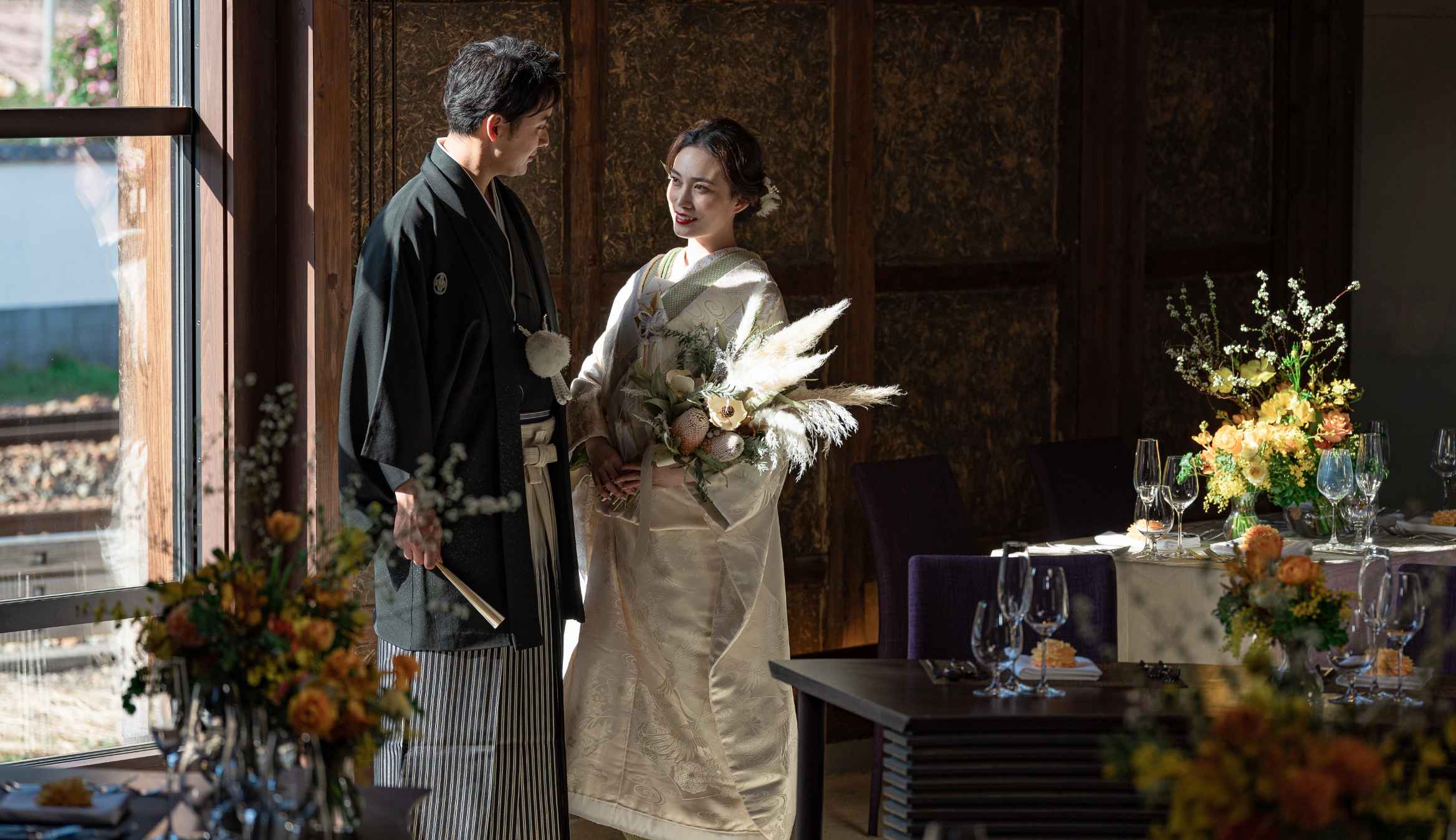 挙式当日はもちろん、前後の時間も心ゆくまでお過ごしいただけます。築400年の旧酒造場を改装した客室は、古き良き趣と現代の快適さが共存する唯一無二の空間。町に点在する建物を巡るように、結婚式後の余韻に浸りながら竹田城下町の街並みをお楽しみいただけます。地元の旬の料理を味わい、夜はライトアップされた竹田城を眺めて、忘れられない特別な思い出を刻んでください。