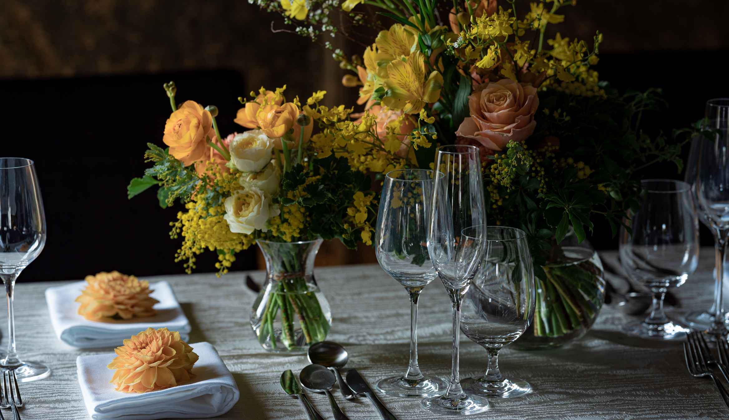 酒蔵時代の面影が館内の随所に残っています。この地で培われた伝統や文化に現代の意匠を纏い、モダンでスタイリッシュな洗練された空間に。時を超えて受け継がれる「本物」に宿る特別感がふたりのウエディングを彩ります。