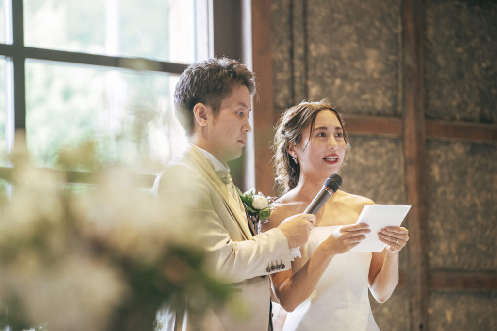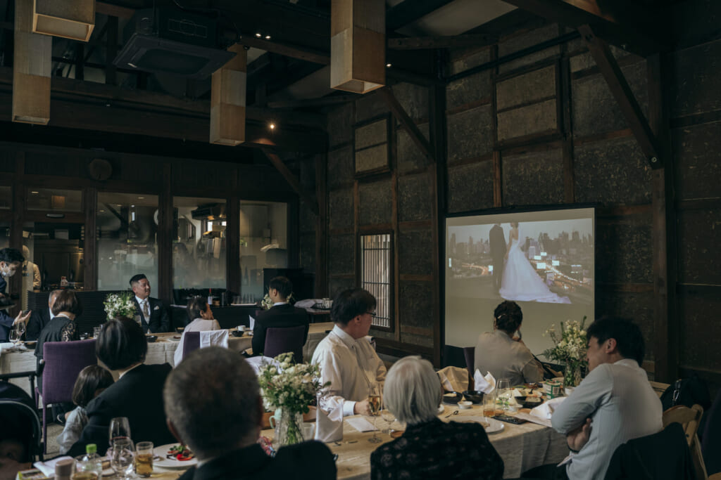 でお披露目されました。新郎様新婦様の幸せそうなお姿を目にされ、お顔をほころばせた皆様。おふたりがお住まいの国の魅力も伝わる、とっておきのムービーとなりました。披露宴の結びでは、親御様へ感謝の手紙をご用意された新婦様。新婦様の素直な想いを綴った手紙は、会場を感動の渦に巻き込みました。遠く離れた地から、日本にいるゲストのことを想いながら丁寧にご準備くださったおふたり。ご両家のご縁とおふたりの絆が一層強められた、心あたたまる一日となりました。